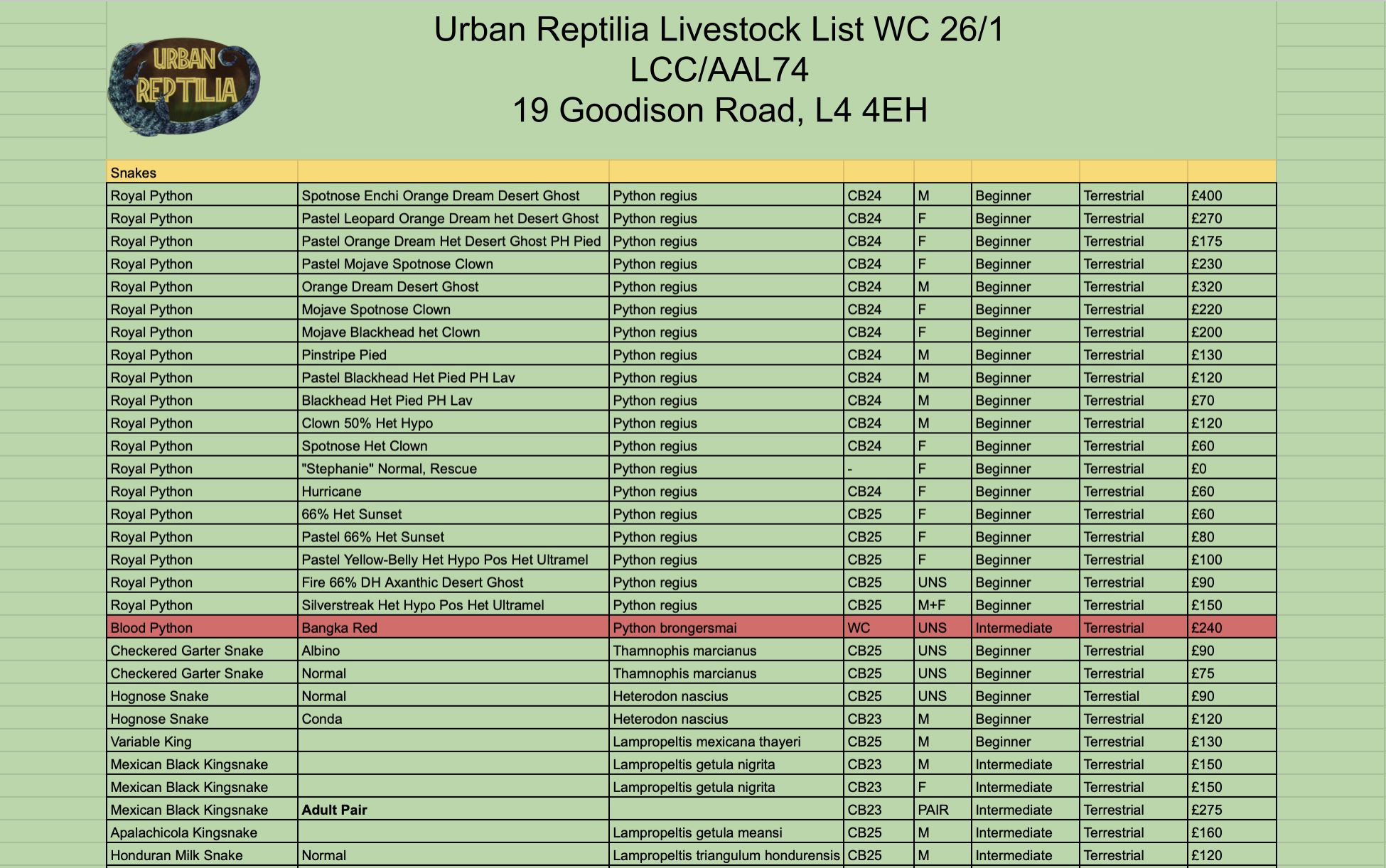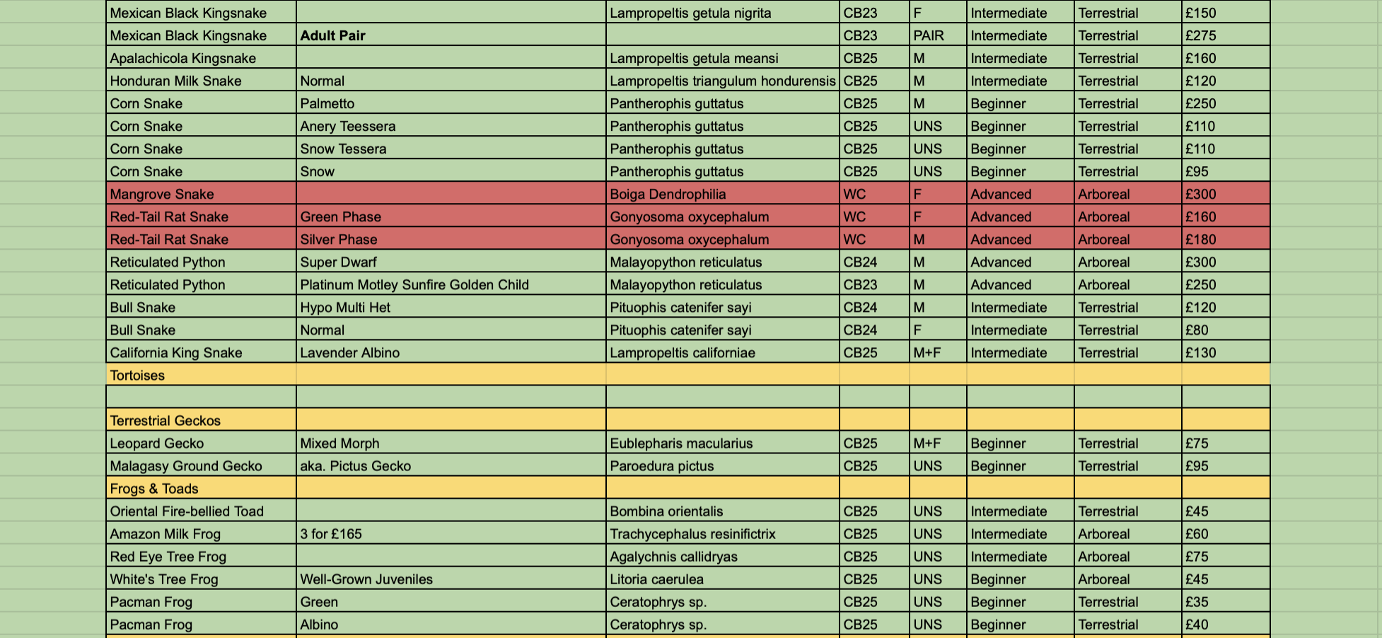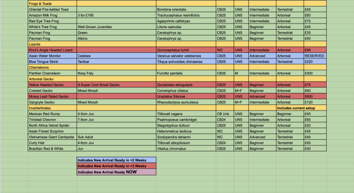 Whilst we do our best to keep our stock list updated, before making a journey for a specific animal please contact the shop ahead of time to avoid any disappointment. We are able to source many different species from breeders here in the UK and Europe. Looking for something special? Get in touch!